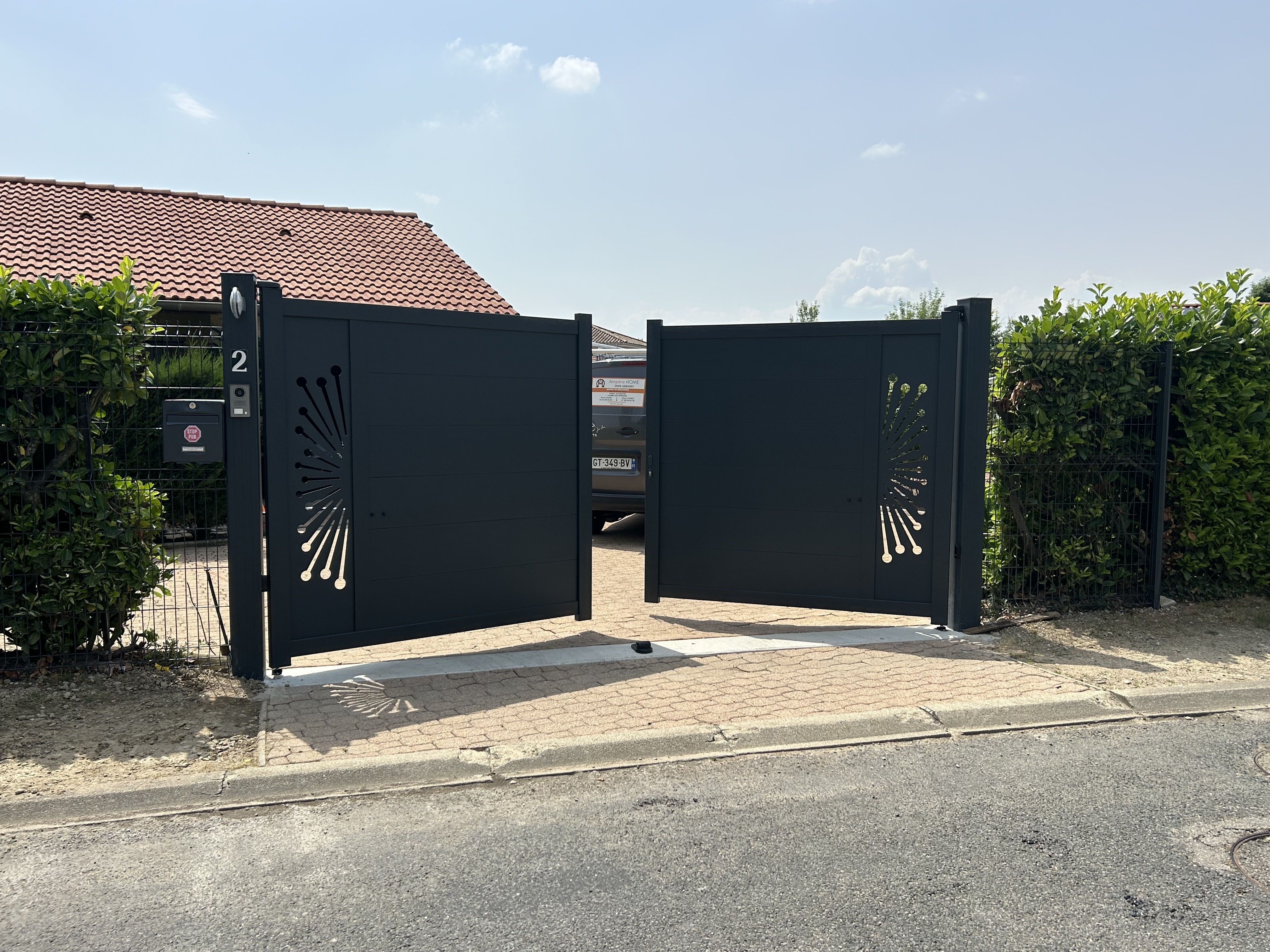Nous avons réalisé de nombreux types de travaux : borne de Recharge pour VE, installation d'alarme, installation de portail.
